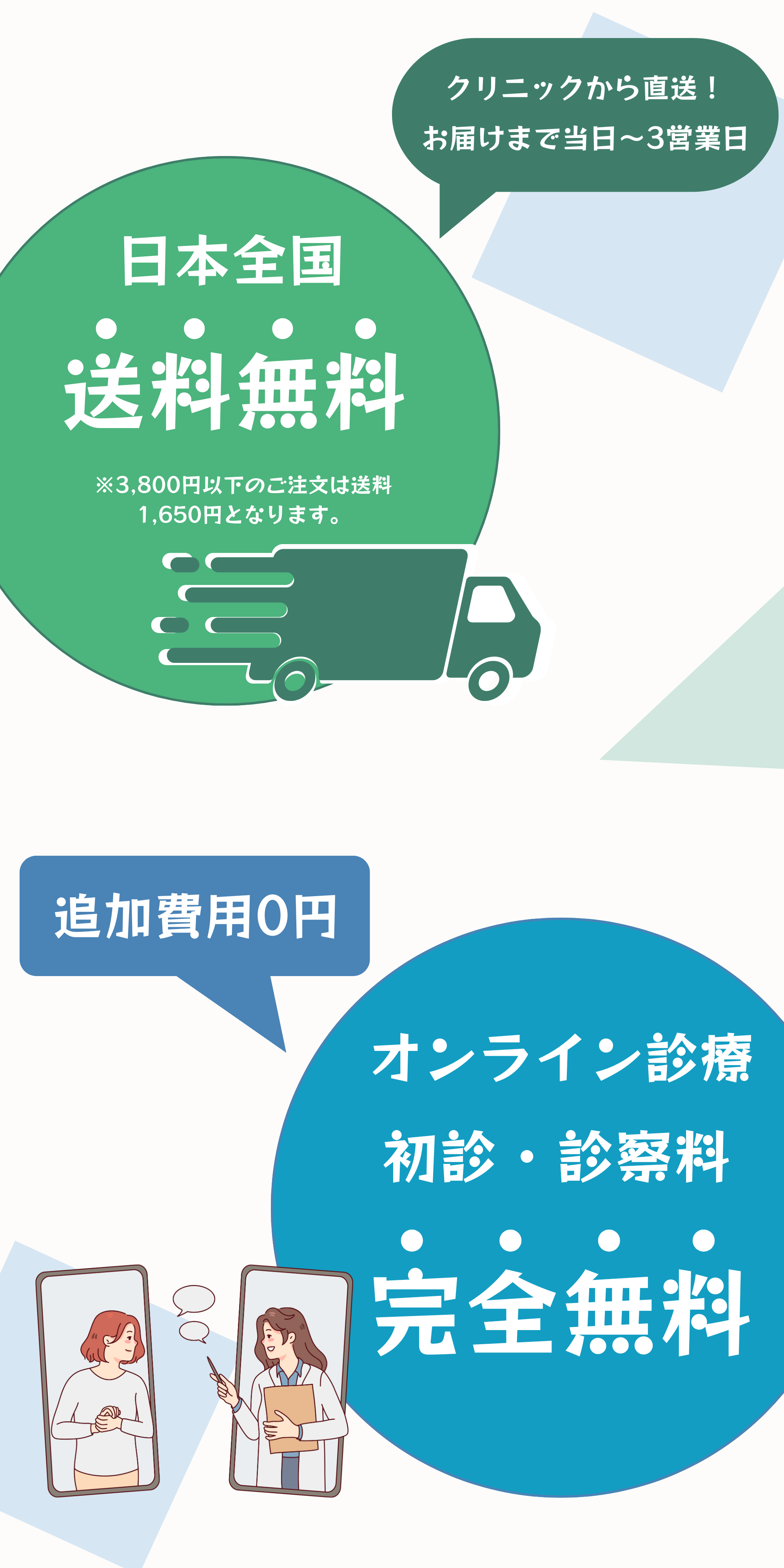 - 一度使用可能と判断しても、当院が今後の処方に適さないと判断した場合や、当院側でカスタマーハラスメントを含む、今後のお取引に問題が生じる可能性があると判断した場合は、予告なくアカウント停止と共に当院とのお取引を停止させていただきます。